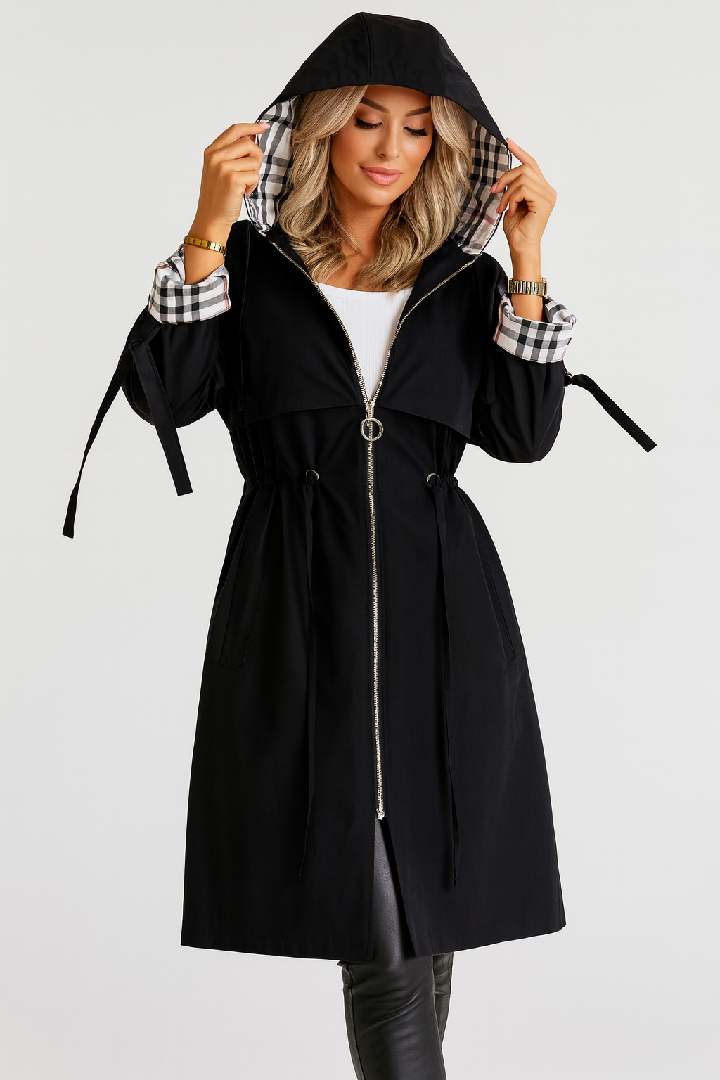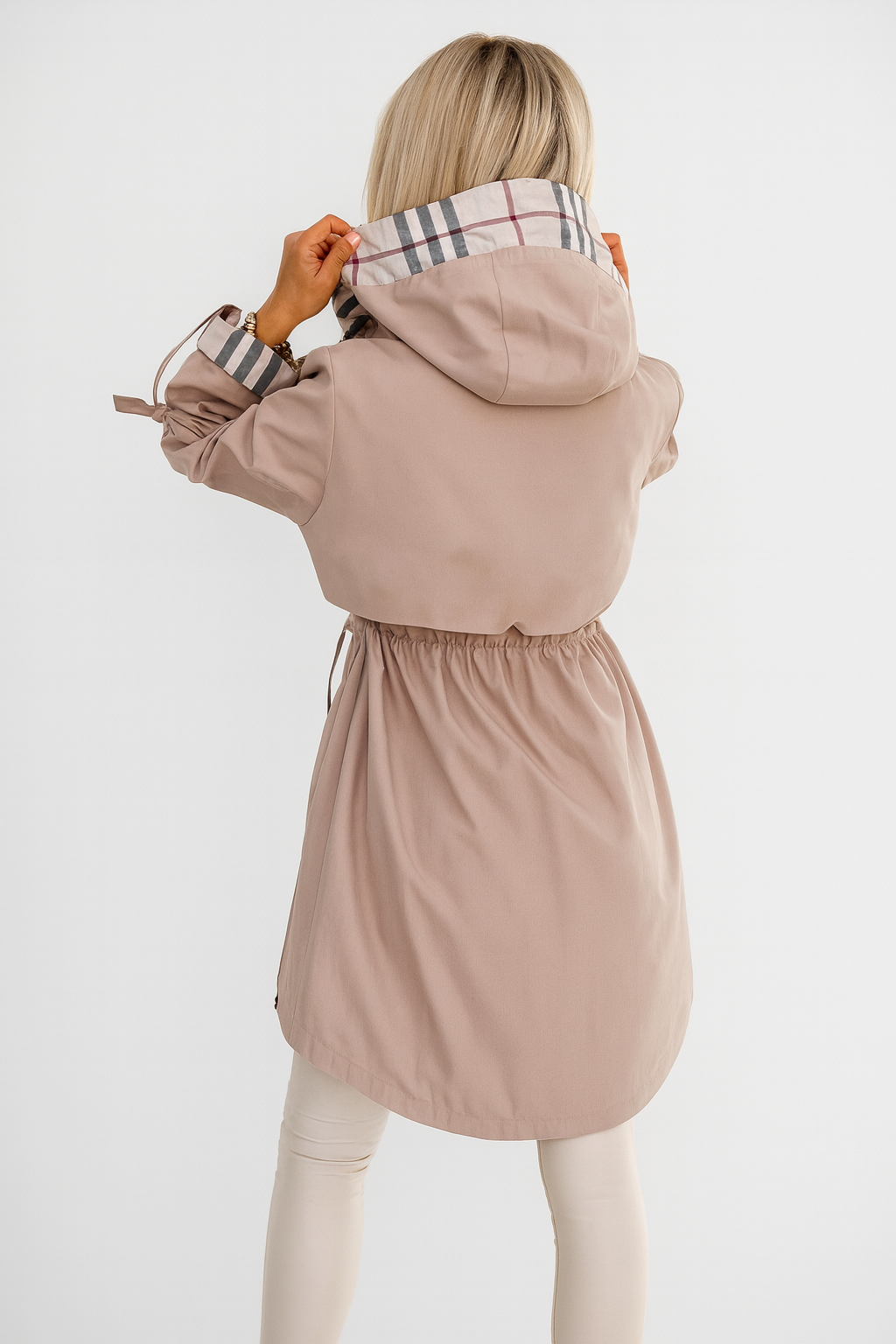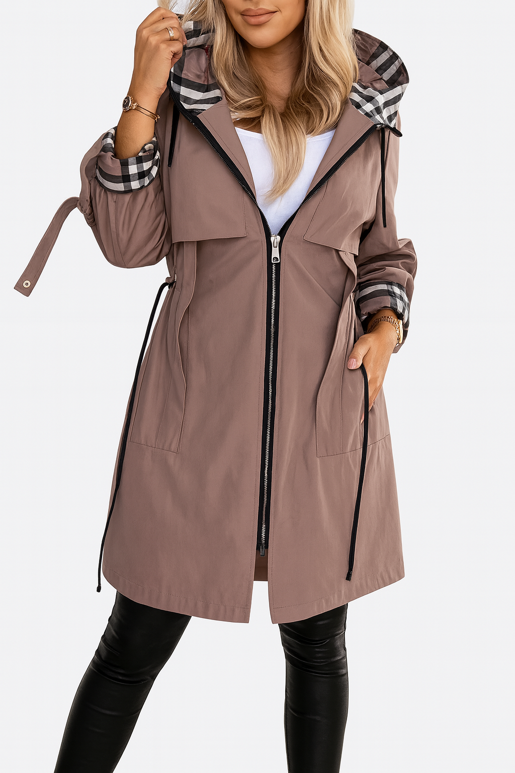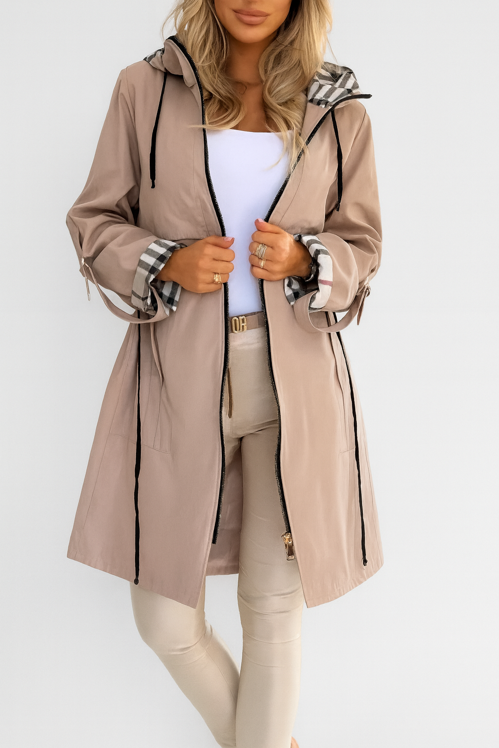 AURORA – Abrigo Ligero con Capucha y Forro Estampado a Cuadros
